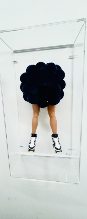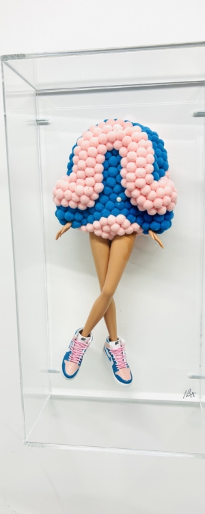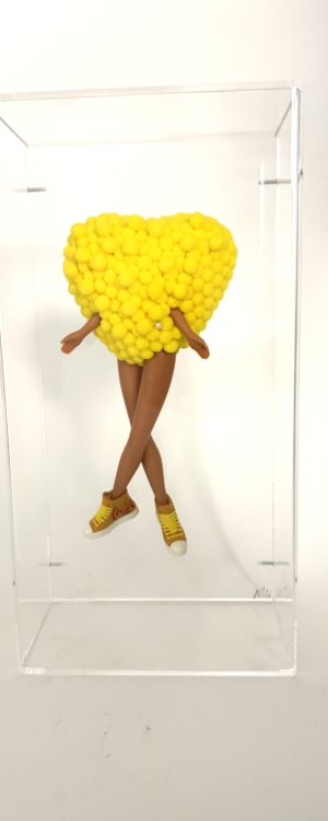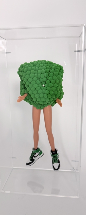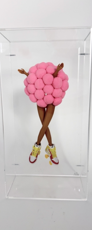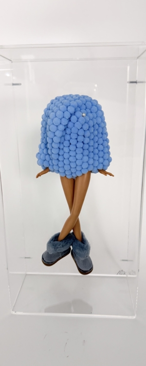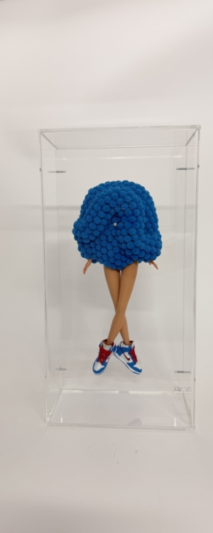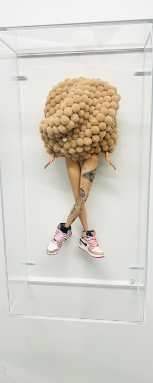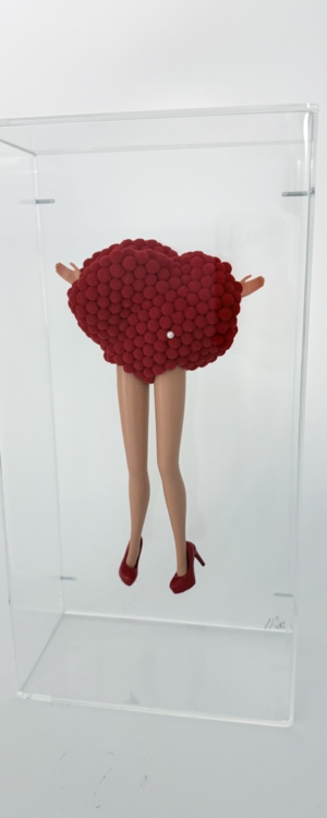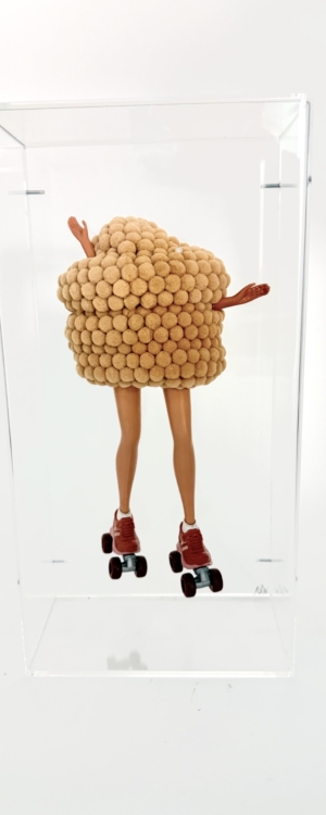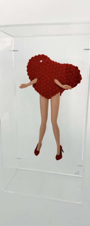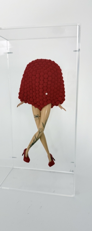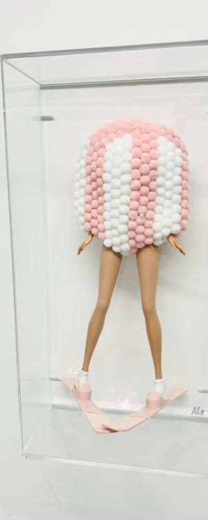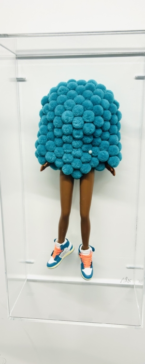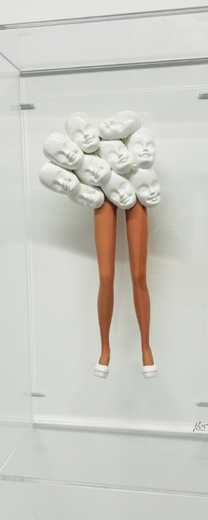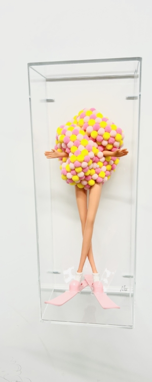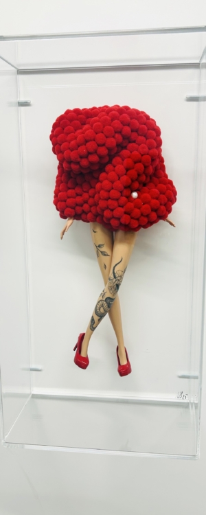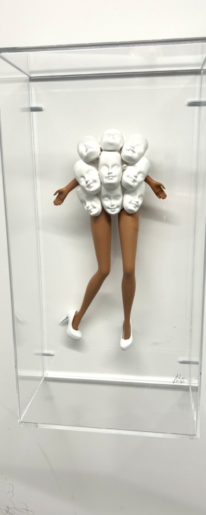 Each piece is unique and iconic, infused with humor and subtle irony as the dolls are transformed into sculptural statements.
