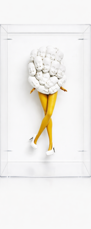 The works presented here are part of my ongoing series The Veiled Self, in which I explore how identity is formed, revealed and quietly concealed within sculptural forms enclosed in plexiglass.